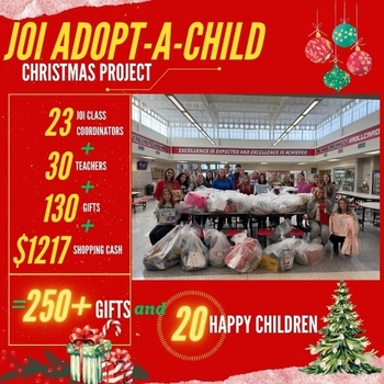 "We are fortunate to have so many who are willing and able to give during the holiday season. Without the help of everyone, this project would not be possible. It is a joy to see the excitement of the JOI representatives and shoppers when they bring in the goods, knowing how much the gifts will help make a child's Christmas a little brighter" stated JOI Club Sponsor Shelly Bailey. This project is a yearly project of New Visions and they get over 500 requests each year.