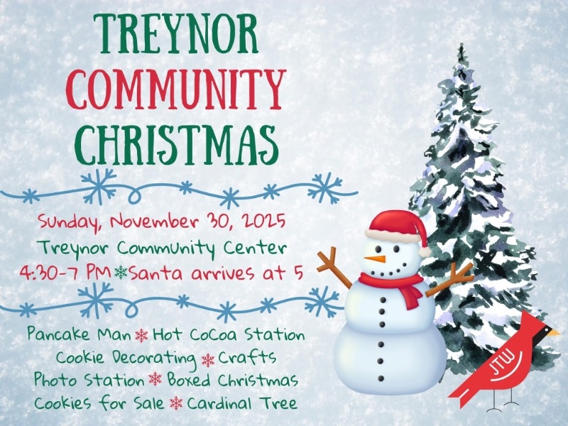 Junior Treynor Women's sponsored Community Christmas will be held on Sunday, November 30, 2025 from 4:30-7:00 p.m. Santa will arrive at 5:00 p.m. There a number of things to do while you're there, which includes: . . .