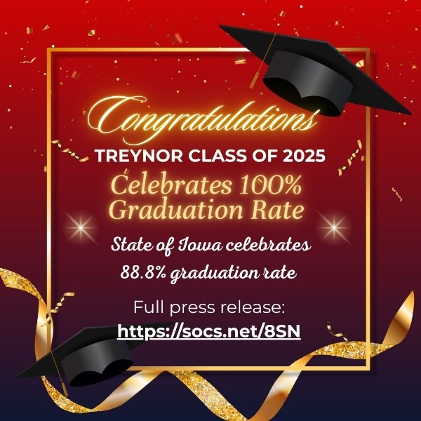 The Iowa Department of Education recently released Iowa high school graduation rates and the state saw a half percent increase in 2025, reaching 88.8%. That percentage marks the highest graduation rate in the past five years. Treynor . . .